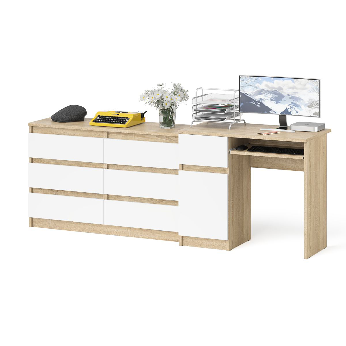 Отзывы о Столплит Стол компьютерный МС-1 с дверкой слева с широким комодом 1200 6-ть ящиков Мори Дуб Сонома, Белый
