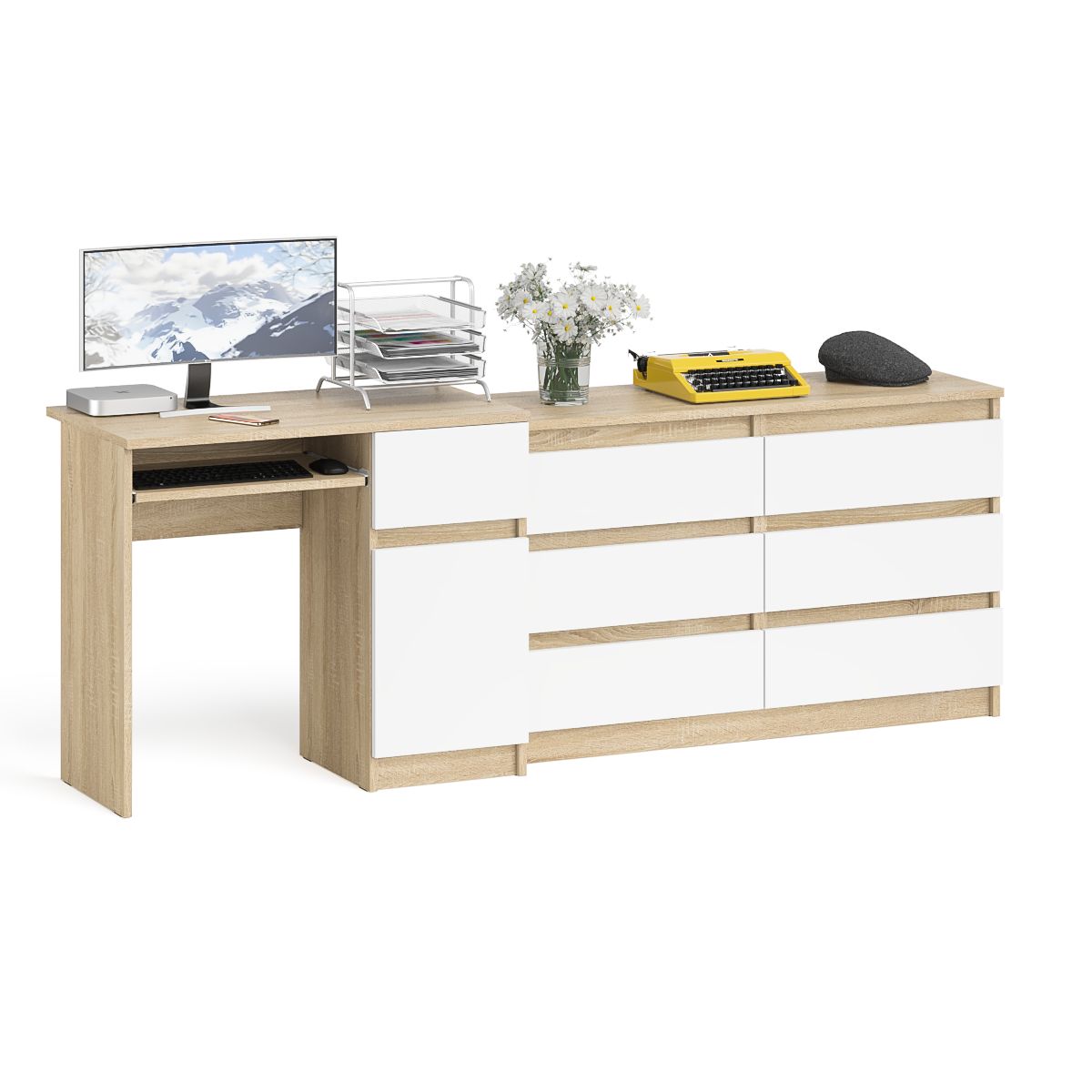 Отзывы о Столплит Компьютерный стол МС-1 с дверкой и ящиком справа и комодом на 1200 6 ящиков Мори Дуб Сонома, Белый