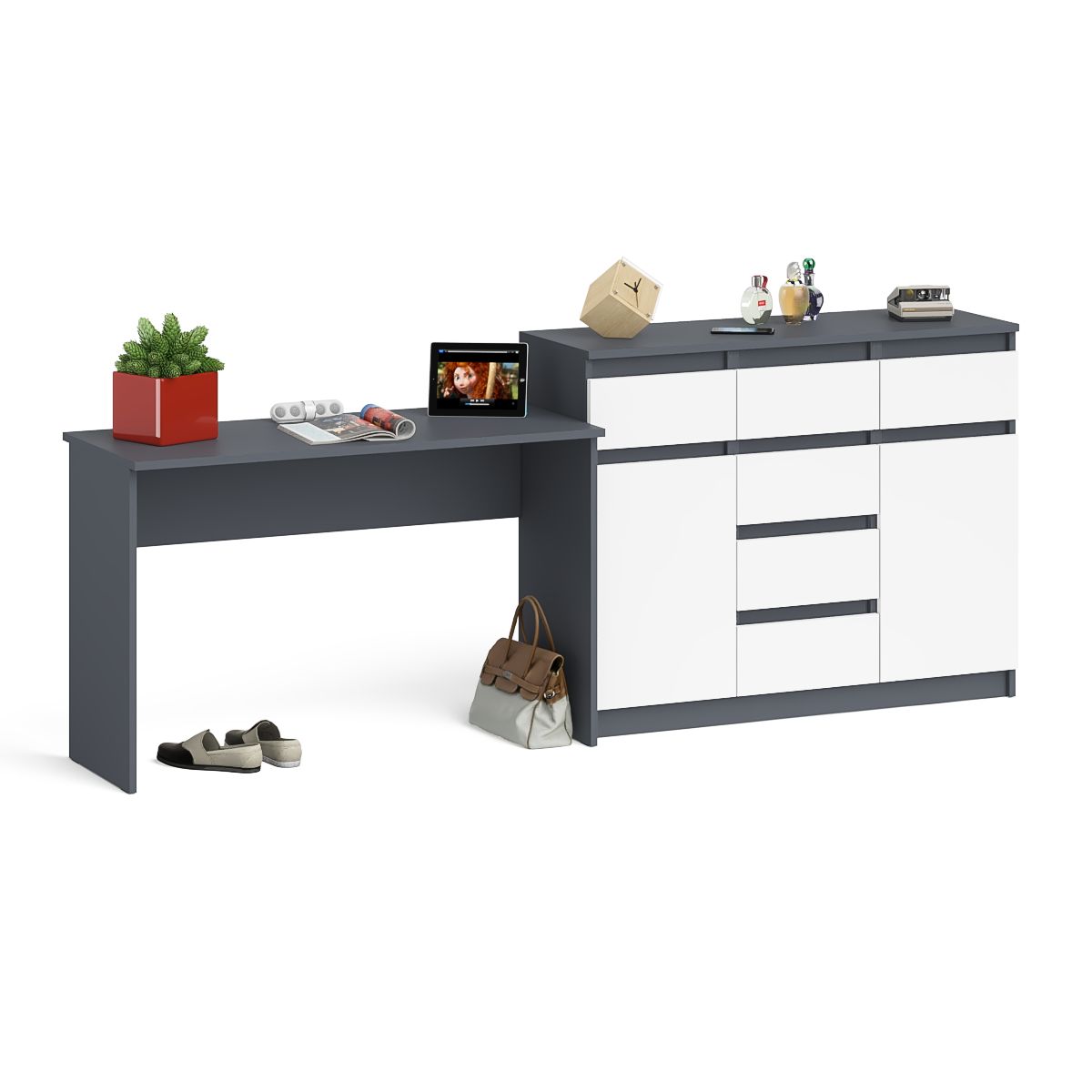 Письменный стол МСП1200.1 с комодом-тумбой на 1200 Мори (Графит/Белый) Код I0000381587