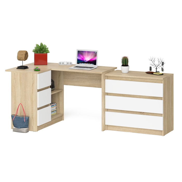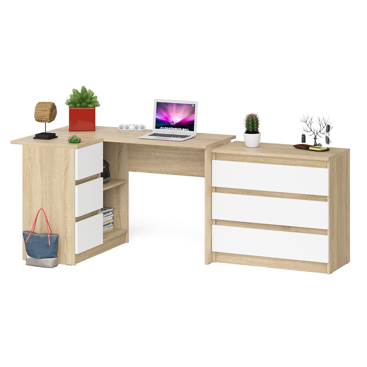 Отзывы о Столплит Компьютерный стол МС-16 левый с комодом на 800 3 ящика Мори Дуб Сонома, Белый