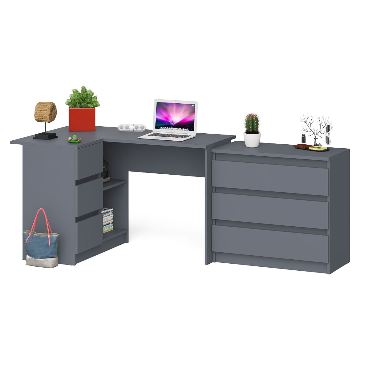 Компьютерный стол МС-16 левый с комодом на 800 3 ящика Мори (Графит) Код I0000381596