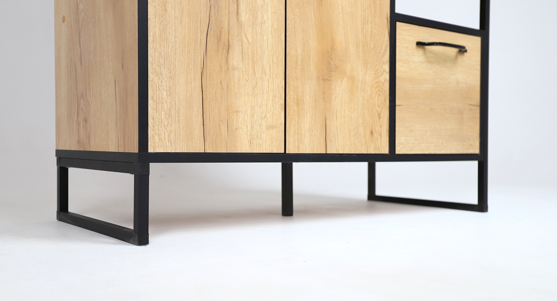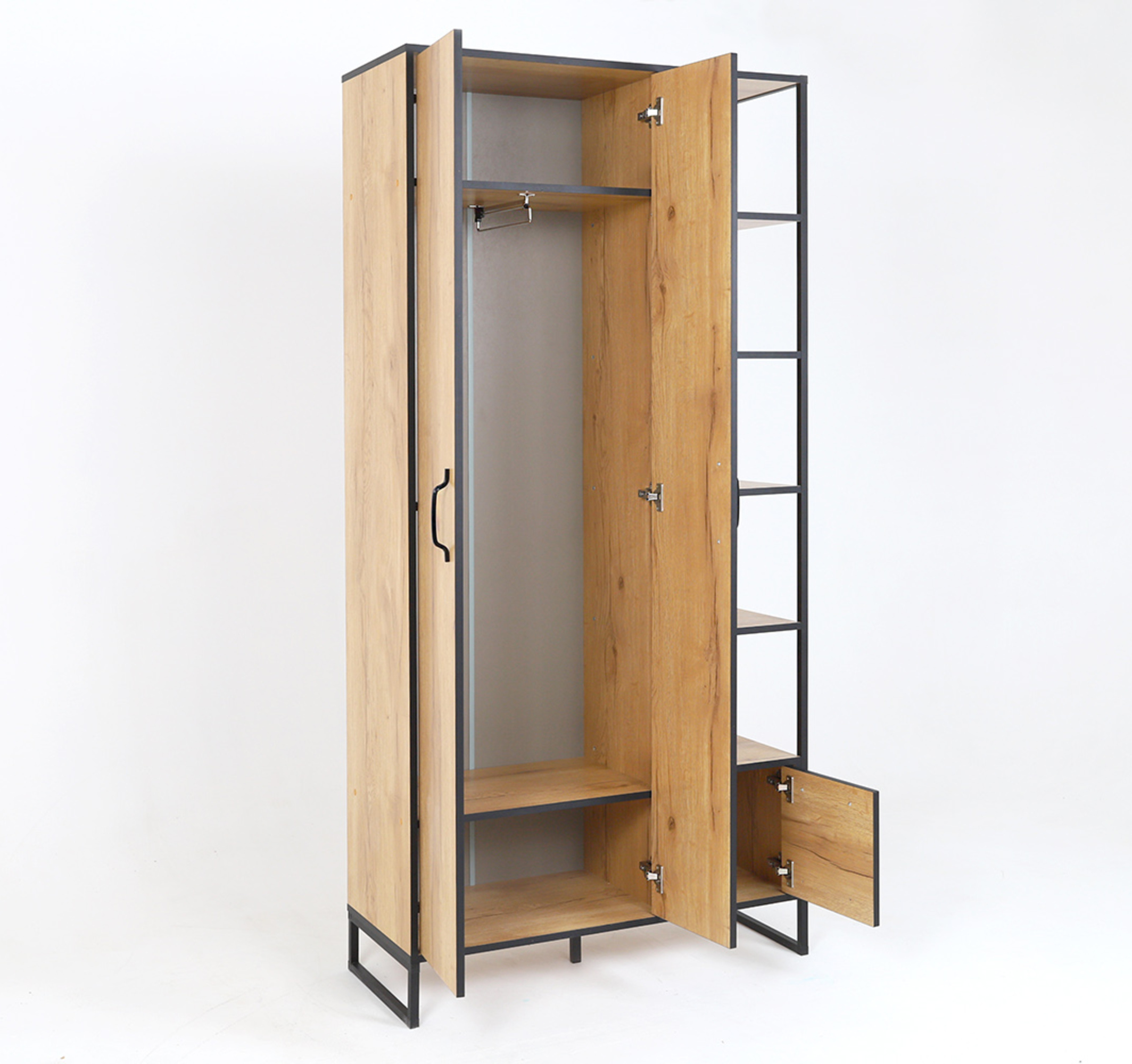 Шкаф имеет универсальную сборку и состоит из 2-х створчатого шкафа, внутри которого находится выкатная штанга. Сбоку “Виртон” дополнен красивыми полочками.