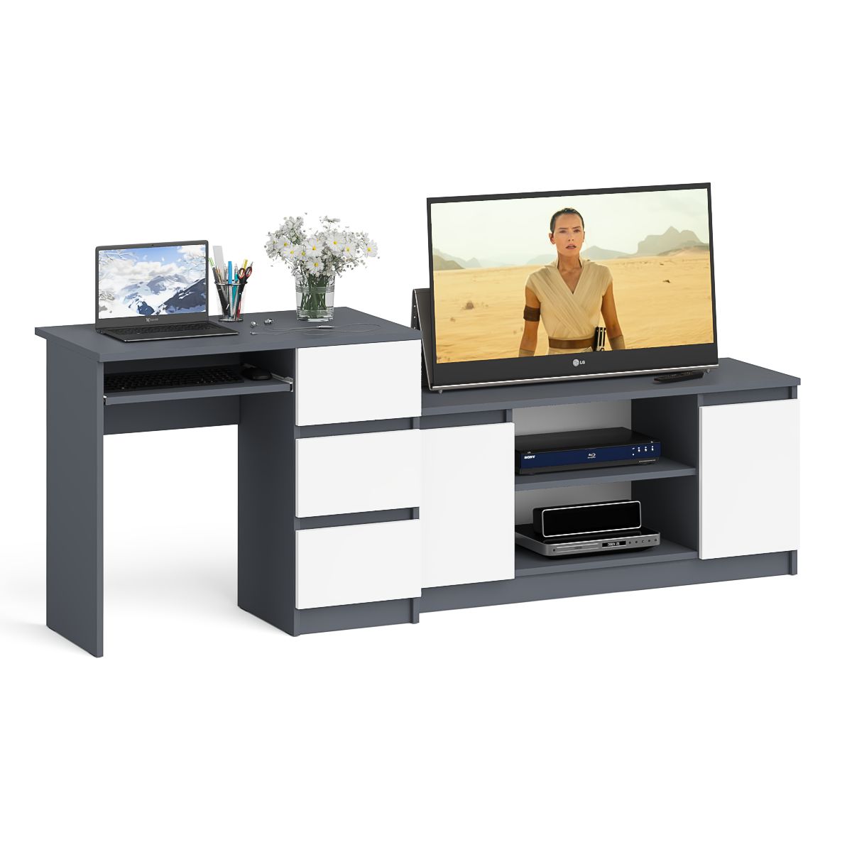 Стол компьютерный МС-6 с тумбой справа и с тумбой на 1200 Мори (Графит/Белый) Код I0000381701