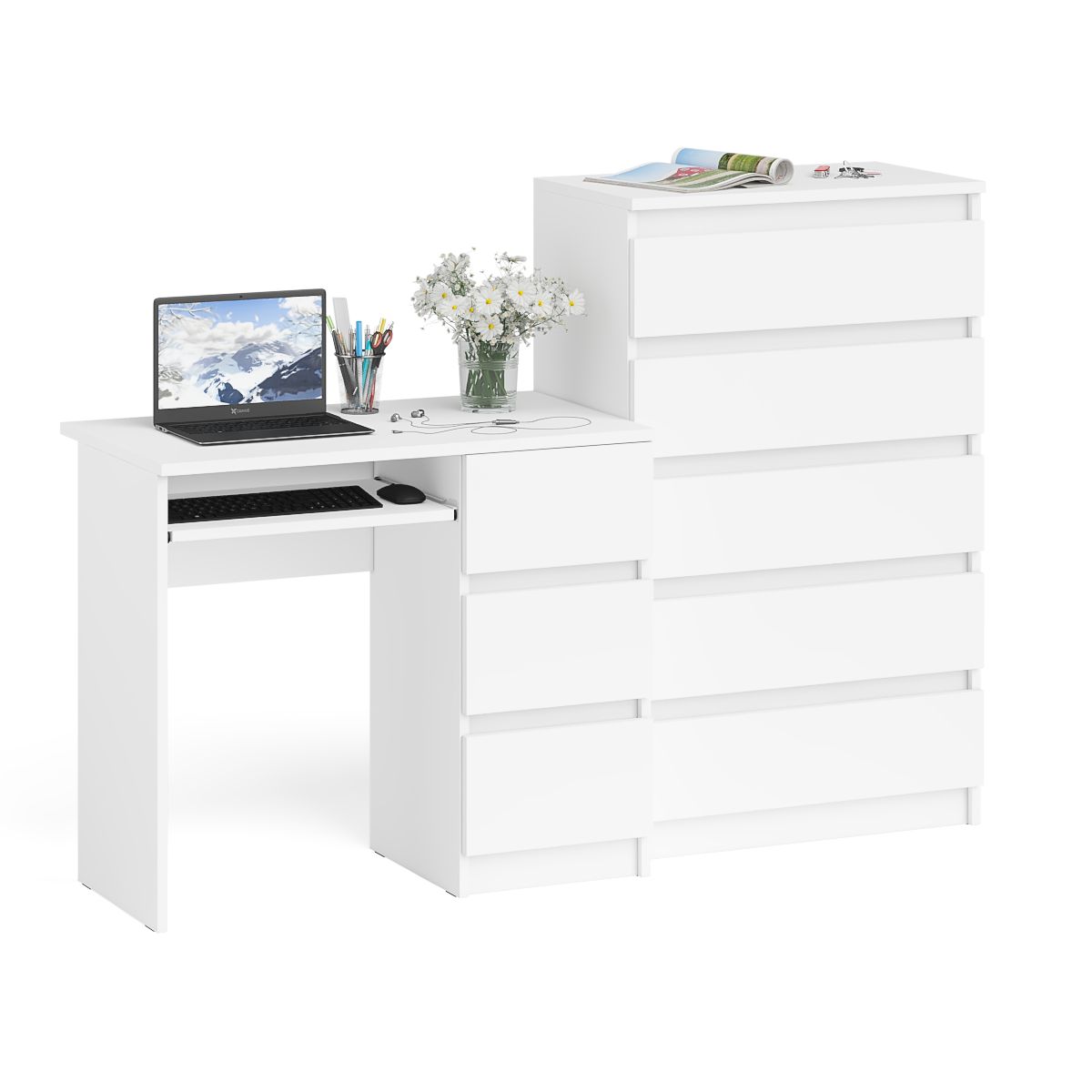 Высокий комод Мори на 700 5 ящиков и компьютерный стол Мори МС-6 тумба справа - минималистичный дизайн и доступная цена позволяет наслаждаться качественной и современной мебелью без значительных финансовых затрат!