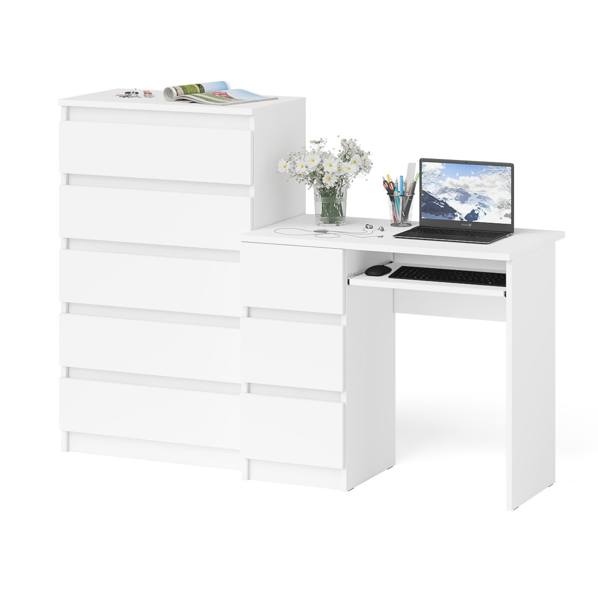 Комод высокий Мори МК700 5-ть ящиков и стол компьютерный Мори МС-6 левый - минималистичный дизайн и доступная цена позволяет наслаждаться качественной и современной мебелью без значительных финансовых затрат!