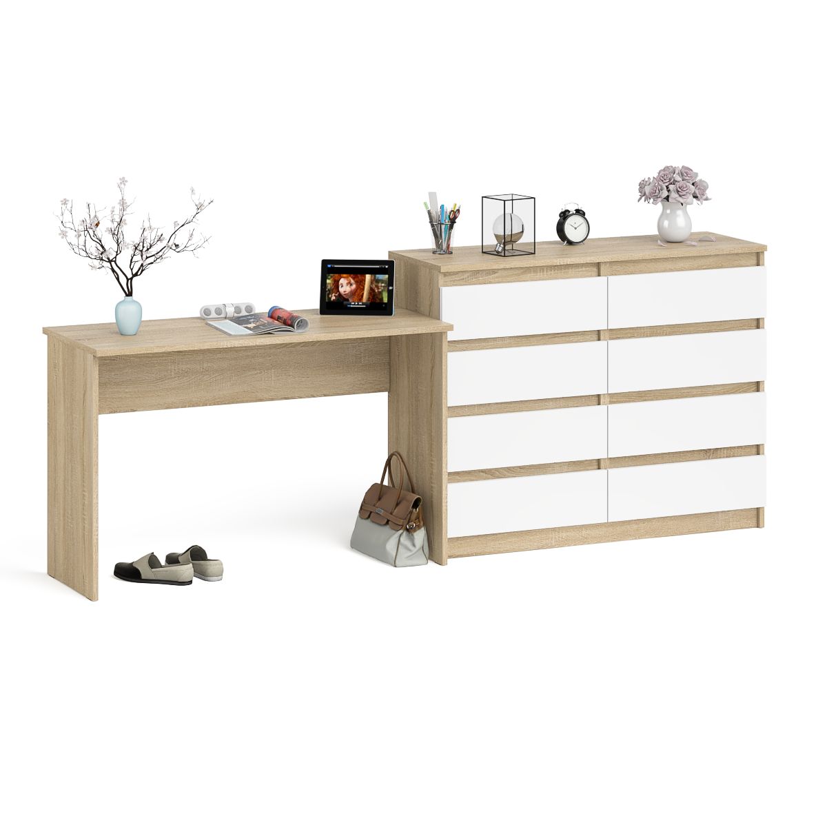 Отзывы о Столплит Комод Мори МК1200 на 8-мь выдвижных ящиков и Мори стол письменный 1200 Дуб Сонома, Белый