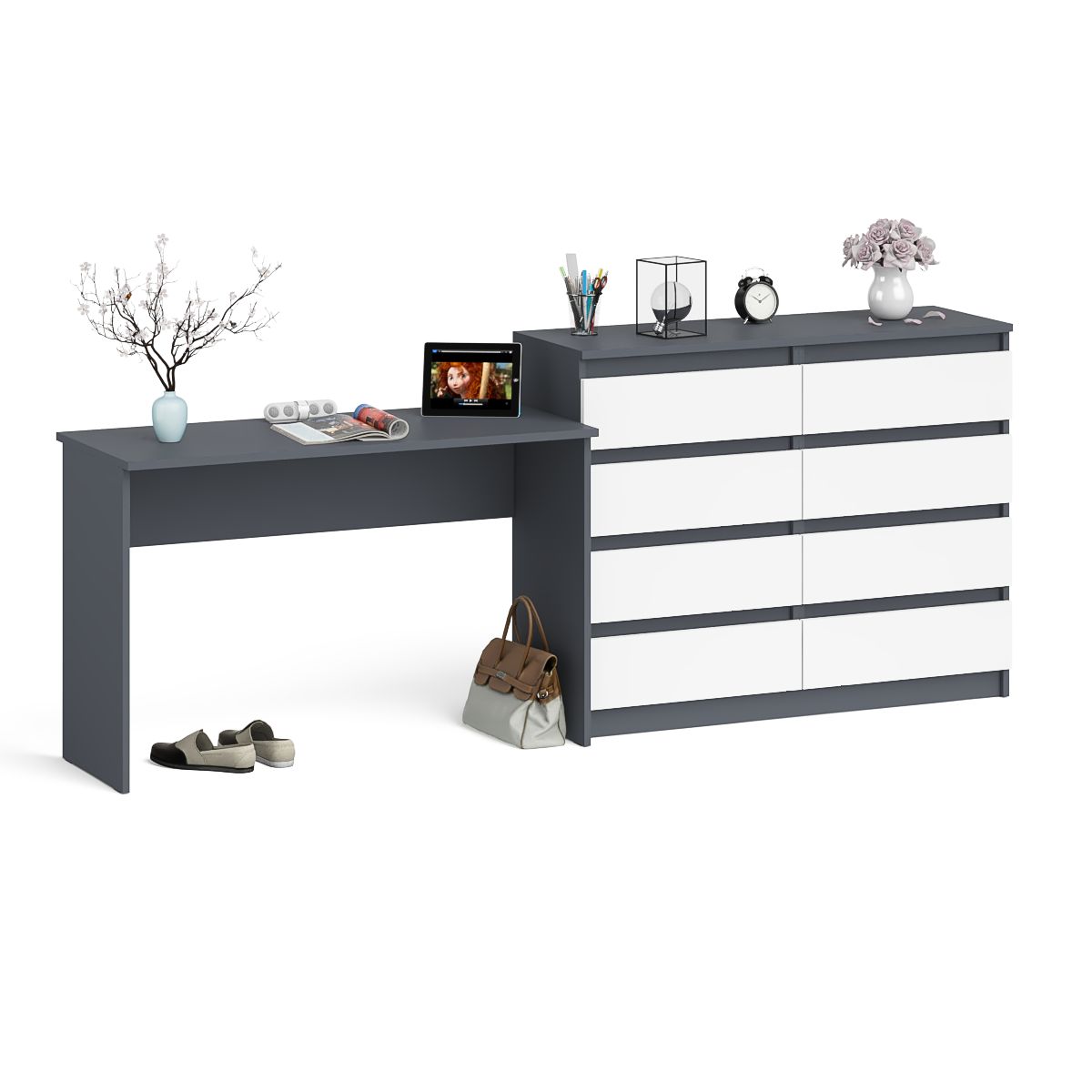 Отзывы о Столплит Комод Мори МК1200 на 8-мь выдвижных ящиков и Мори стол письменный 1200 Графит/Белый