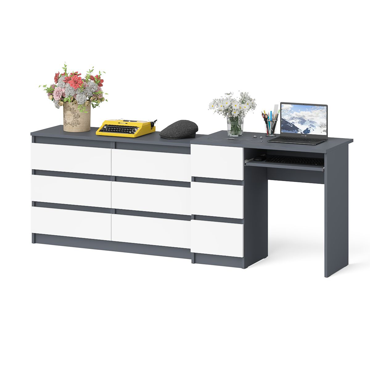 Отзывы о Столплит Комод Мори МК1200 6-ть ящиков со столом компьютерным МС-6 левым Графит/Белый