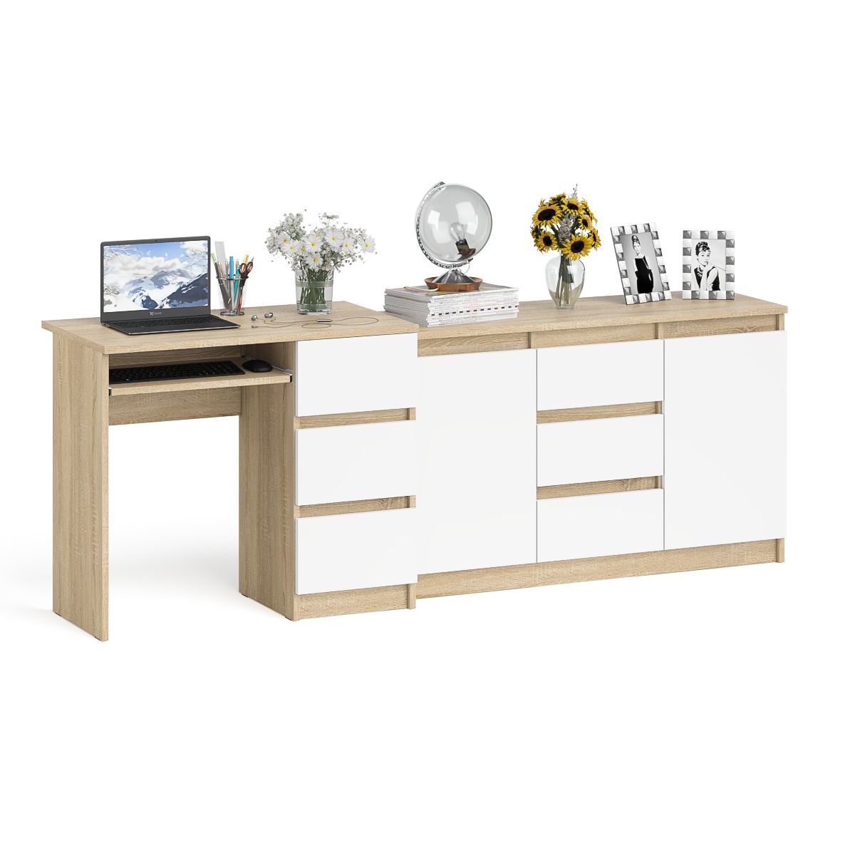 Отзывы о Столплит Тумба-комод МК1200 3 ящика и дверки и Мори компьютерный стол МС-6 три ящика справа Дуб Сонома, Белый
