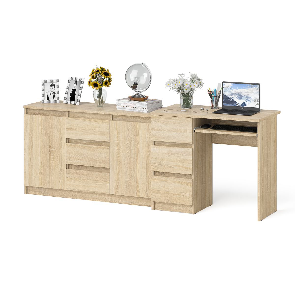 Отзывы о Столплит Тумба-комод Мори МК1200.3 и Мори стол компьютерный МС-6 левый Дуб Сонома