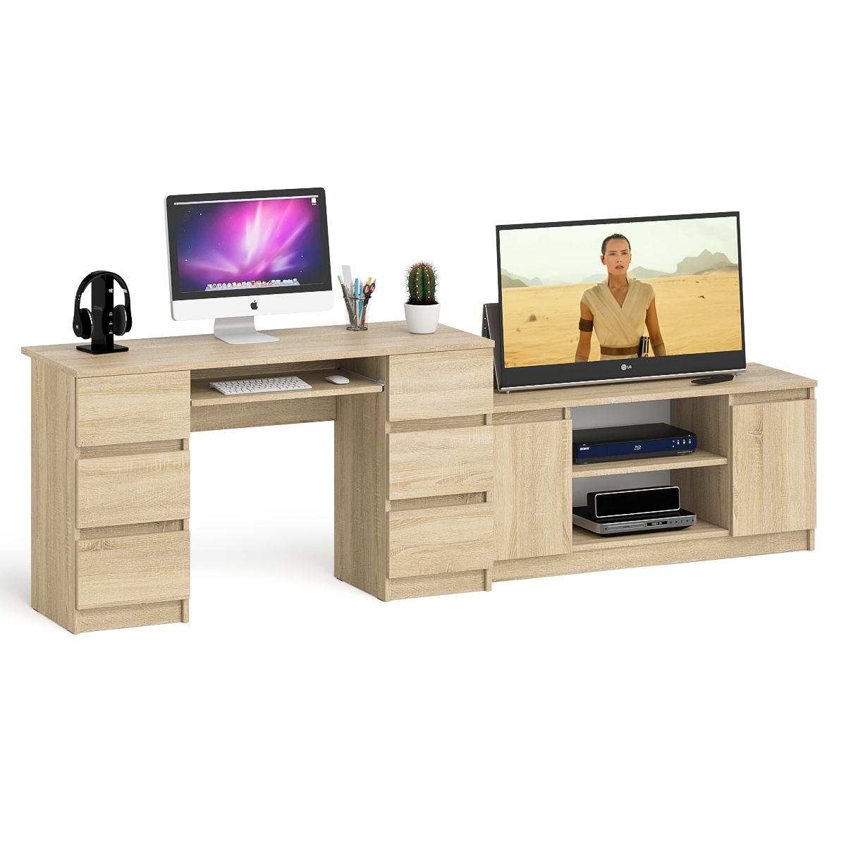Тумба Мори МТВ1200.1 и двухтумбовый стол компьютерный МС-2 (Дуб Сонома) Код I0000381759
