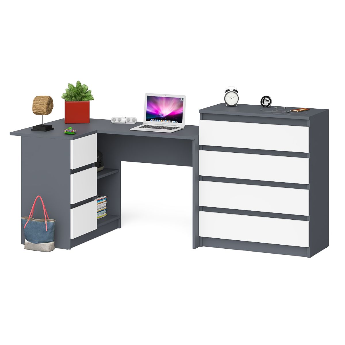 Отзывы о Столплит Комод Мори МК800 4-ре ящика с угловым компьютерным столом Мори МС-16 тумба слева Графит/Белый