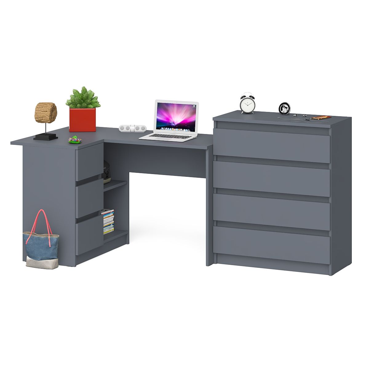 Комод Мори МК800 4-ре ящика с угловым компьютерным столом Мори МС-16 тумба слева - минималистичный дизайн и доступная цена позволяет наслаждаться качественной и современной мебелью без значительных финансовых затрат!