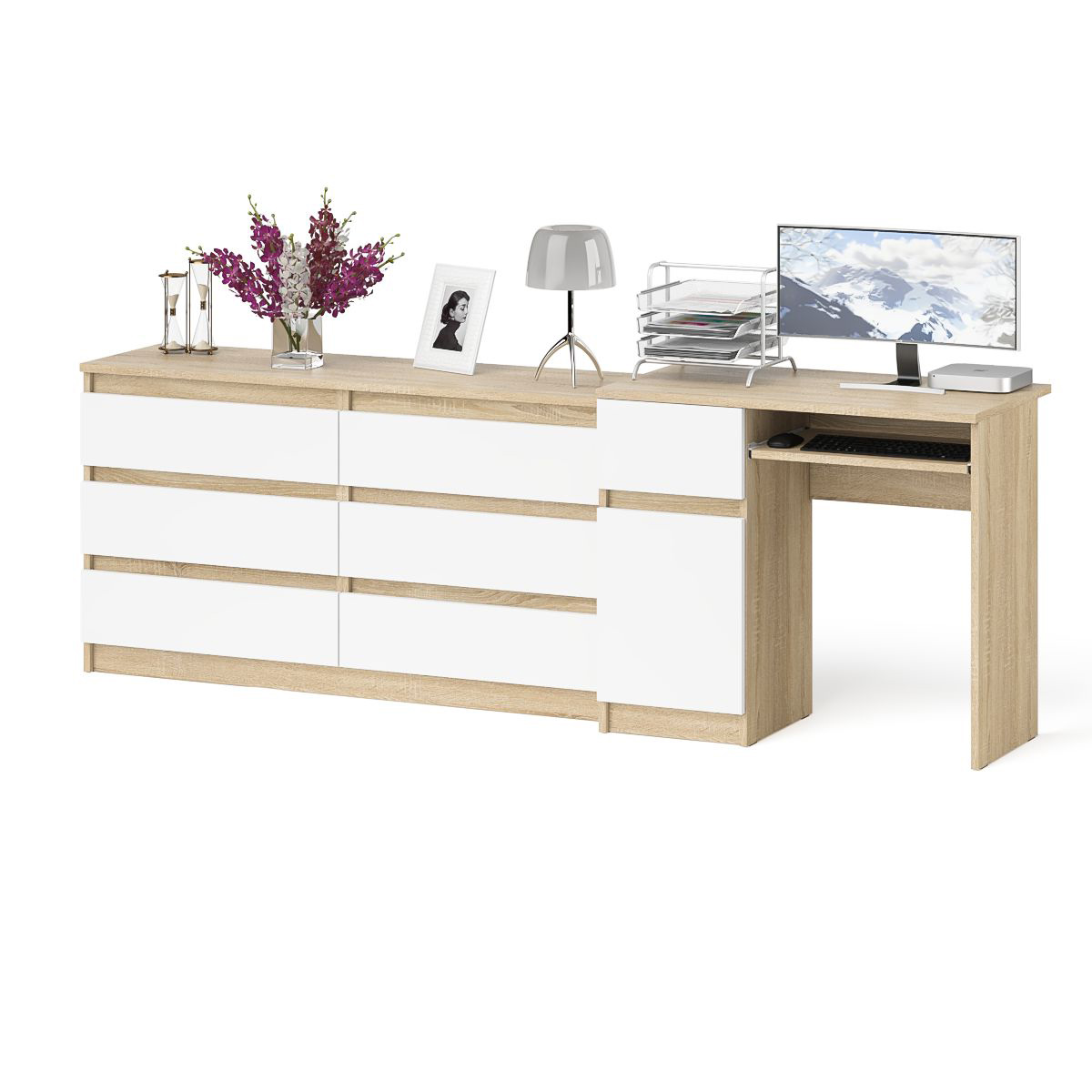 Отзывы о Столплит Комод 6-ть ящиков Мори 1380 и стол компьютерный МС-1 дверка и ящик слева Дуб Сонома, Белый