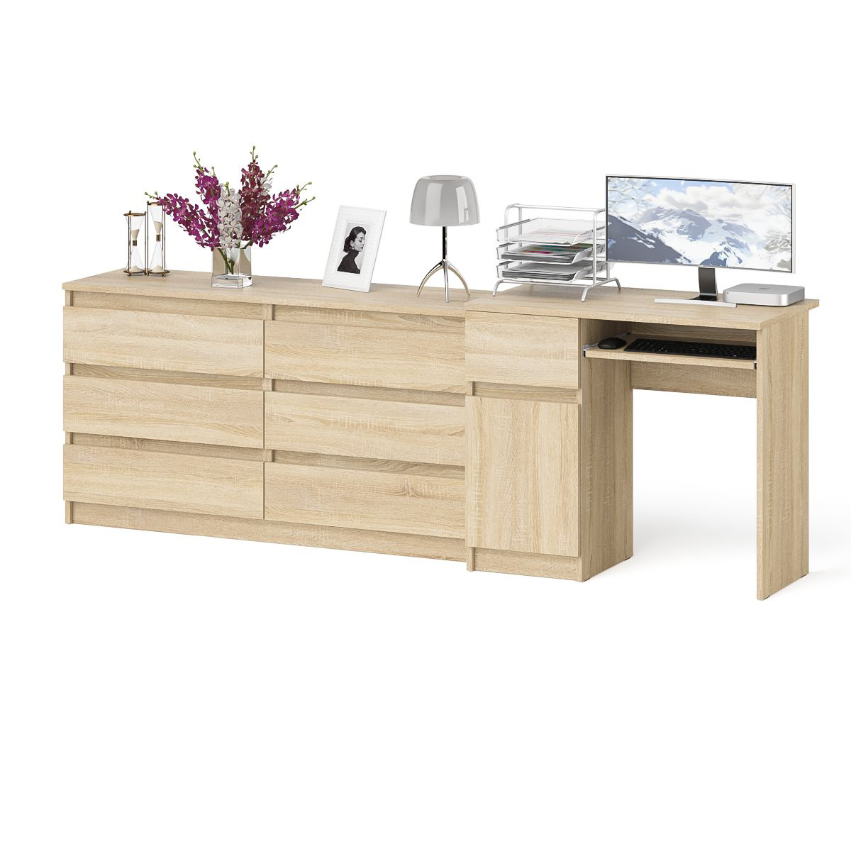 Отзывы о Столплит Комод 6-ть ящиков Мори 1380 и стол компьютерный МС-1 дверка и ящик слева Дуб Сонома