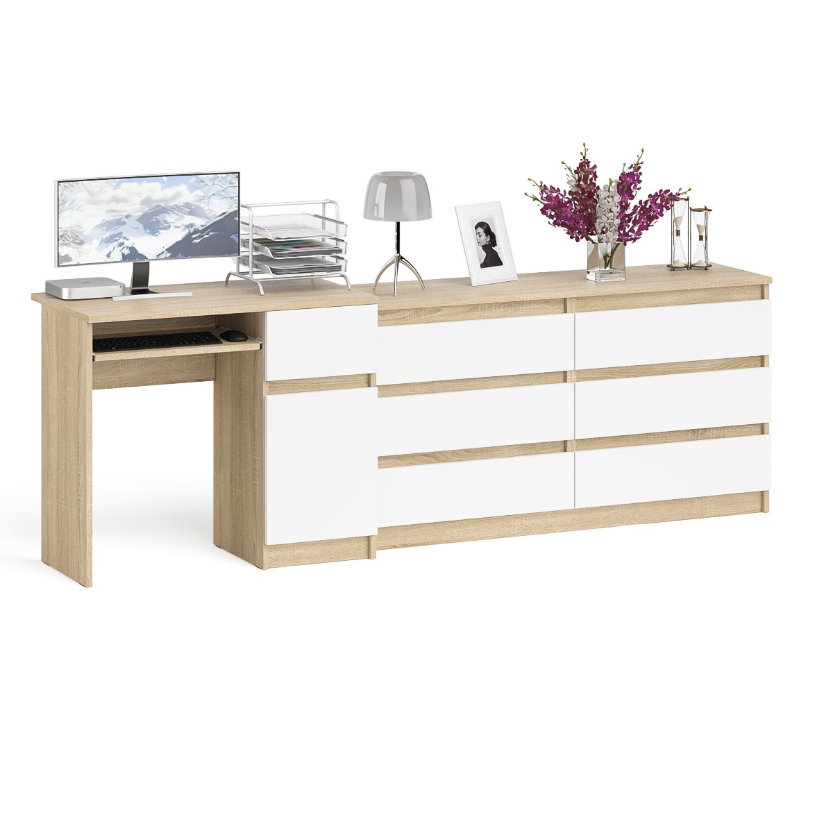 Отзывы о Столплит Комод Мори МК1380 6 выдвижных ящиков с компьютерным столом МС-1 правый Дуб Сонома, Белый