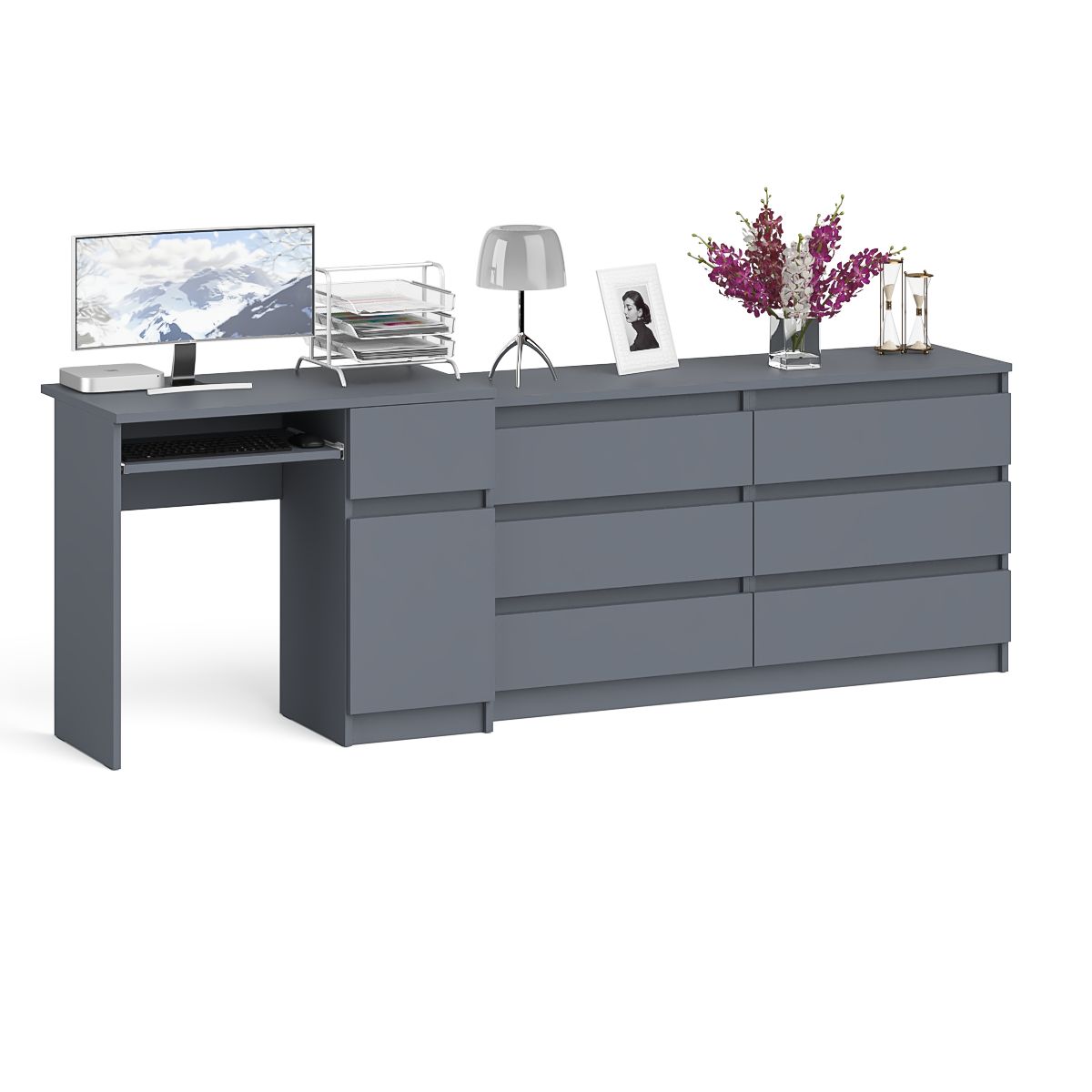 Комод Мори МК1380 6 выдвижных ящиков с компьютерным столом МС-1 правый - минималистичный дизайн и доступная цена позволяет наслаждаться качественной и современной мебелью без значительных финансовых затрат!