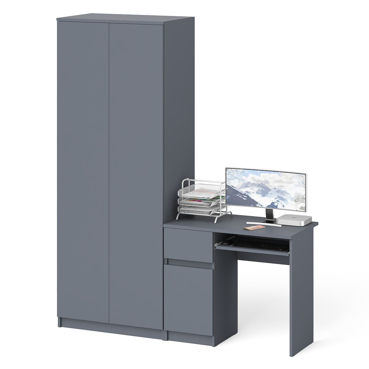 Отзывы о Столплит Шкаф две двери Мори 800.1 с компьютерным столом МС-1 ящик и дверь слева Графит