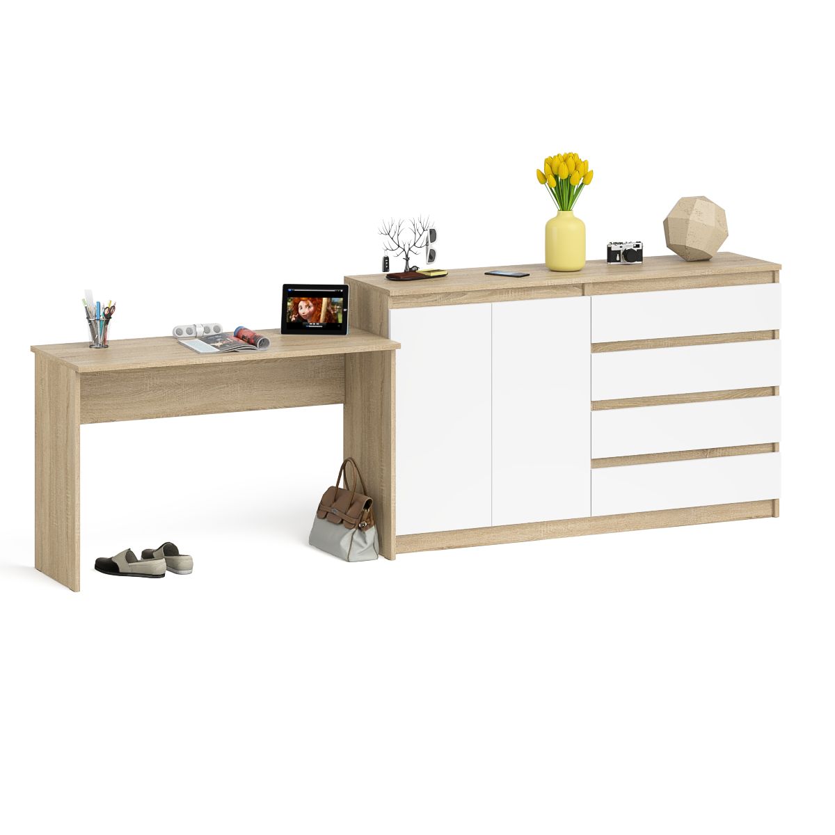Отзывы о Столплит Тумба-комод Мори 1600.1 с письменным столом МСП1200 Дуб Сонома, Белый