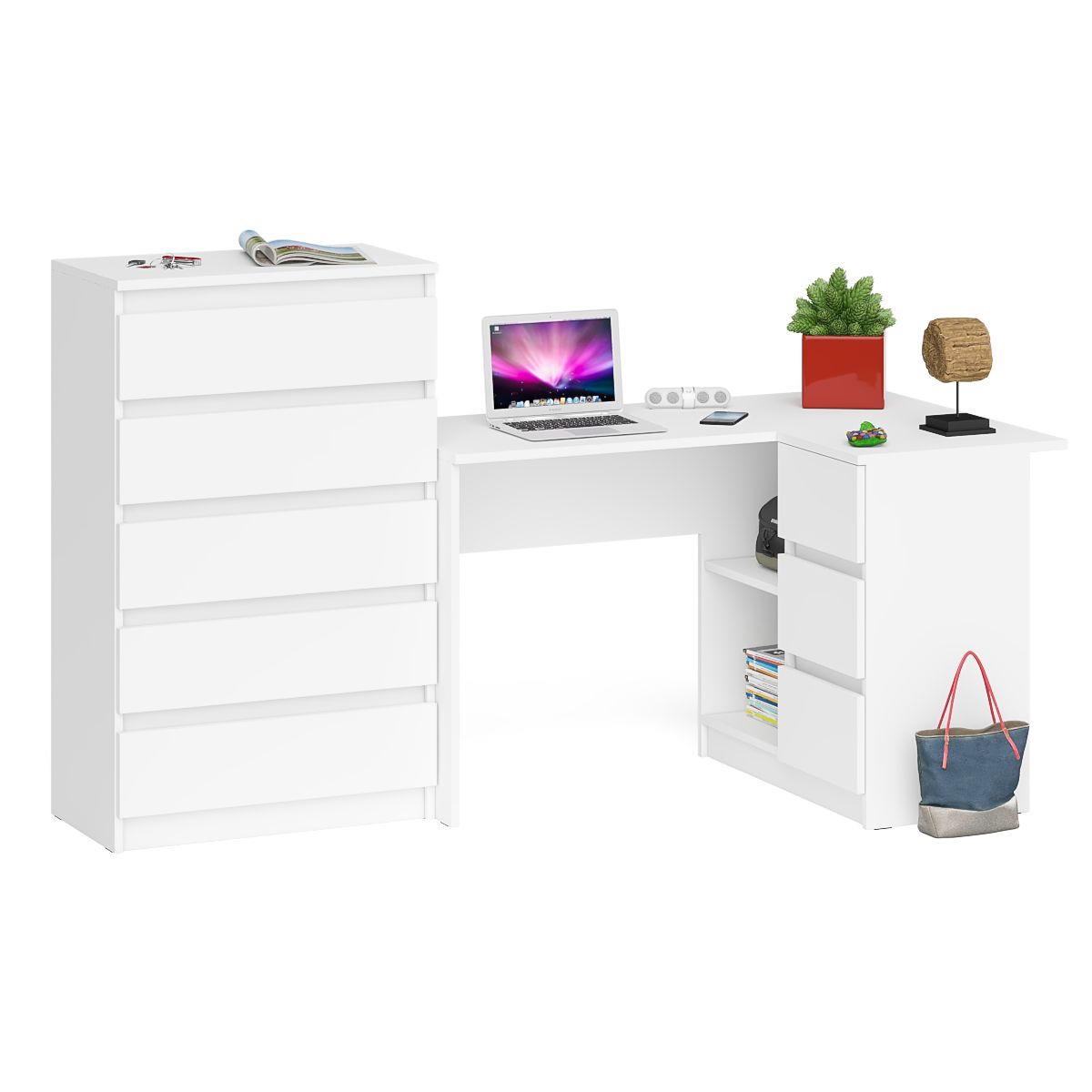 Отзывы о Столплит Высокий комод 700 пять ящиков и угловой компьютерный стол МС-16 правый серии Мори Белый