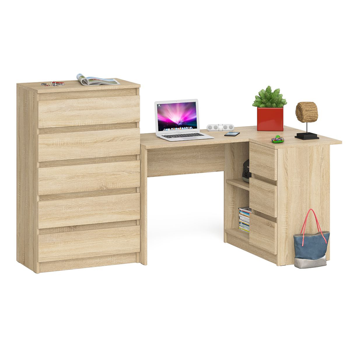 Отзывы о Столплит Высокий комод 700 пять ящиков и угловой компьютерный стол МС-16 правый серии Мори Дуб Сонома
