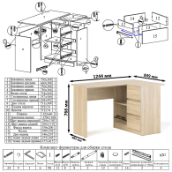 Выполнен в 5-ти цветах: белый, графит, графит/белый, дуб сонома и дуб сонома/белый.