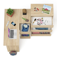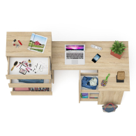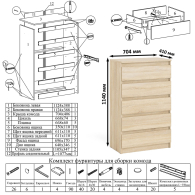 Открывание ящиков и двери производится за счет пространства между планками и фасадами. Выдвижные ящики на роликовых направляющих L=350 мм неполного выдвижения обеспечивают комфортную эксплуатацию. На нижних кромках опор предусмотрены пластиковые подпятники для защиты поверхности пола от механических повреждений. Поставляется в разобранном виде в надёжной упаковке, с комплектом сборочной фурнитуры и инструкцией по сборке.
