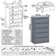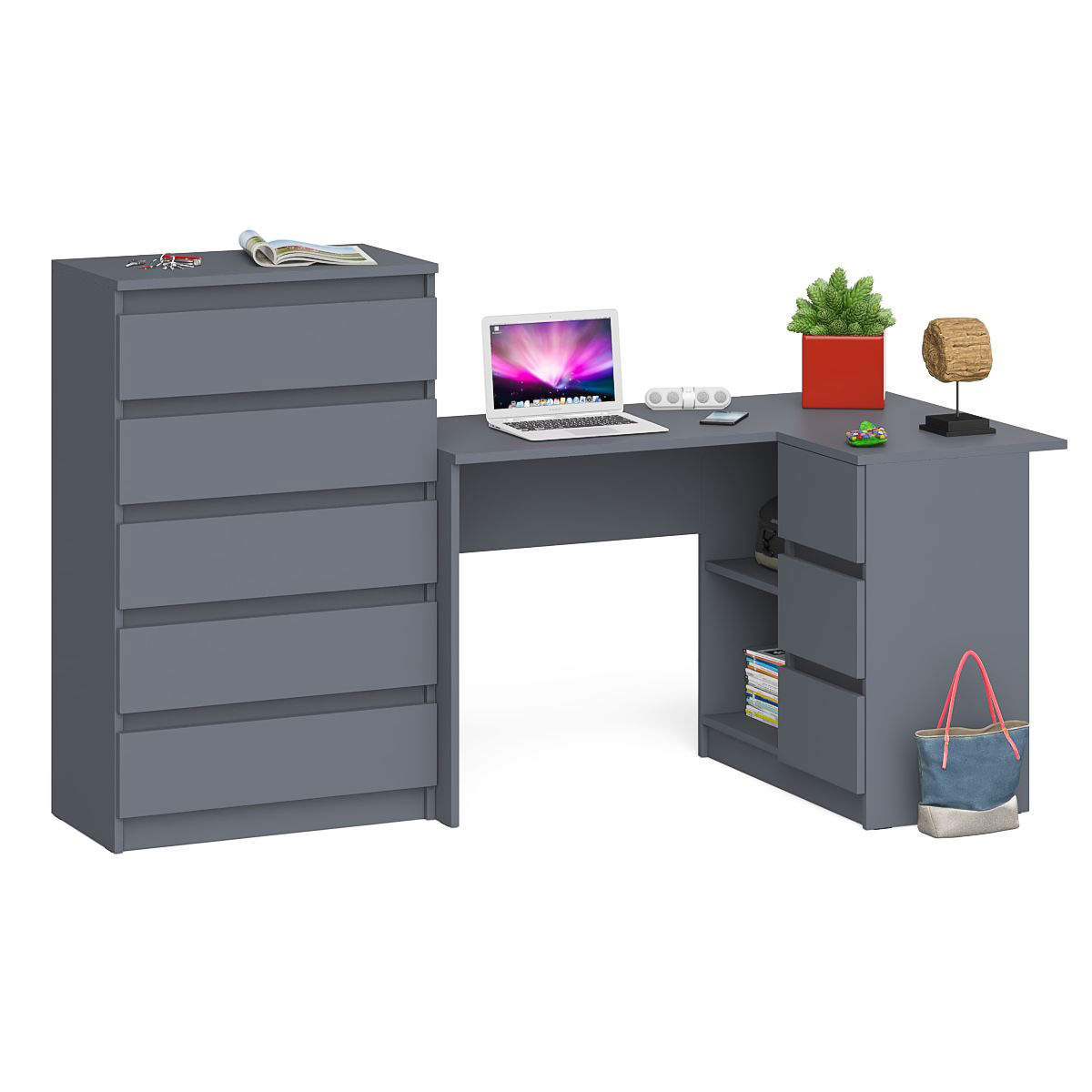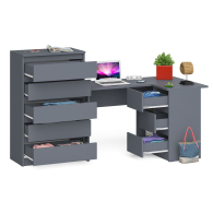 Отзывы о Столплит Высокий комод 700 пять ящиков и угловой компьютерный стол МС-16 правый серии Мори Графит