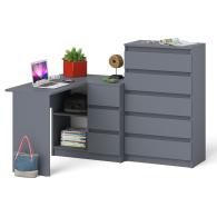 Высокий комод 700 пять ящиков и угловой компьютерный стол МС-16 правый серии Мори - минималистичный дизайн и доступная цена позволяет наслаждаться качественной и современной мебелью без значительных финансовых затрат!