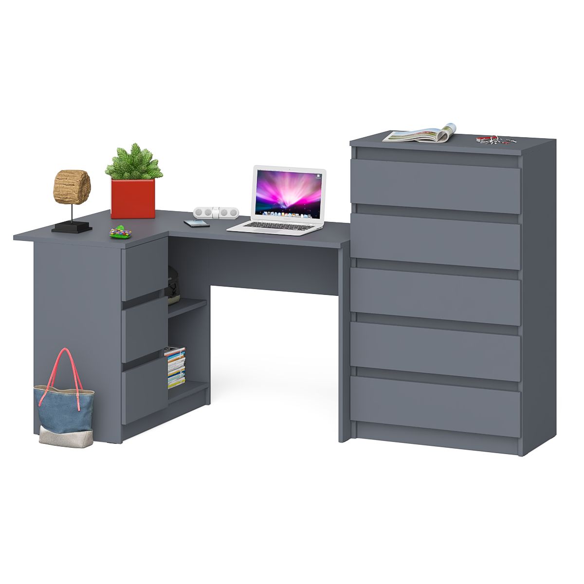 Отзывы о Столплит Комод на 700 5-ть ящиков и стол компьютерный МС-16 угловой левый серии Мори Графит