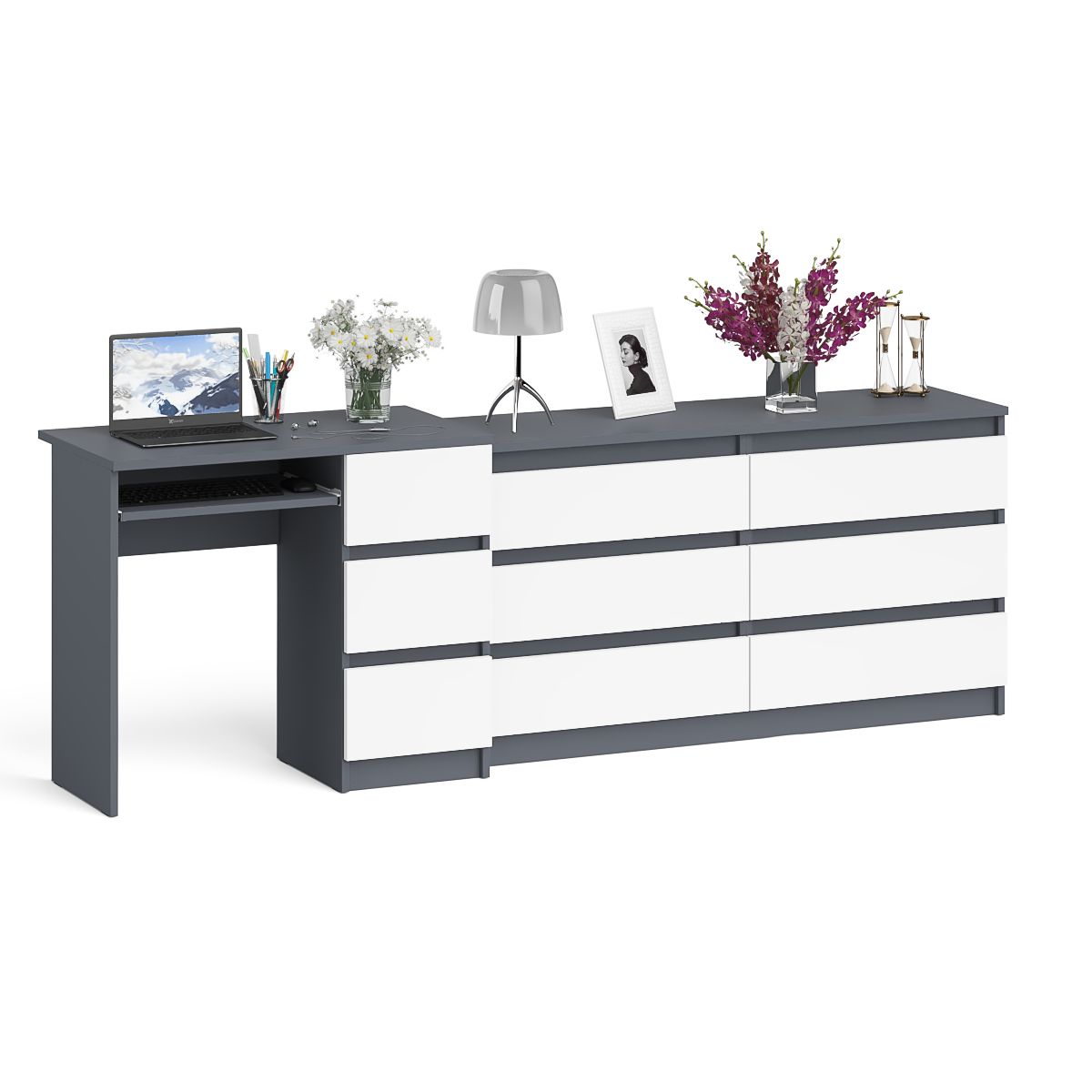 Отзывы о Столплит Комод 1380 6-ть ящиков Мори с однотумбовым столом компьютерным МС-6 правым Графит/Белый