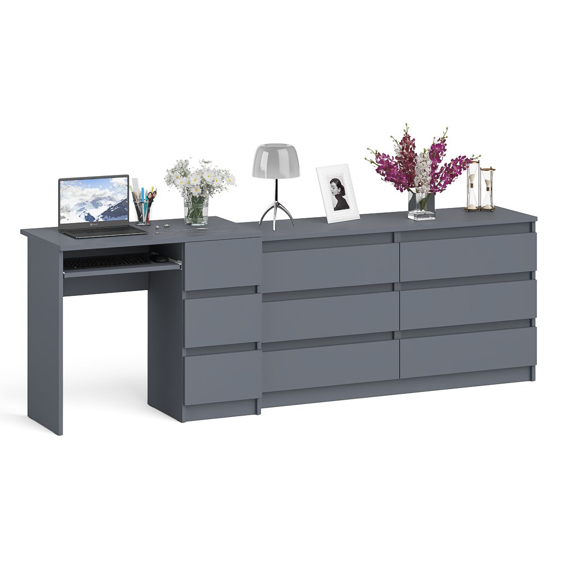 Комод 1380 6-ть ящиков Мори с однотумбовым столом компьютерным МС-6 правым - минималистичный дизайн и доступная цена позволяет наслаждаться качественной и современной мебелью без значительных финансовых затрат!
