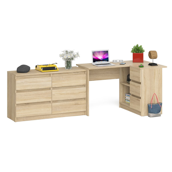 Комод Мори 1200 6 ящиков и компьютерный угловой стол МС-16 правый (Дуб Сонома) Код I0000381870