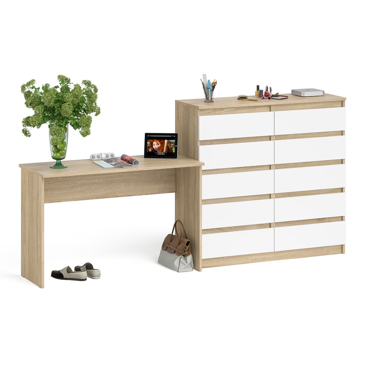 Отзывы о Столплит Большой комод МК1200.10 десять ящиков и письменный стол МСП1200 Мори Дуб Сонома, Белый