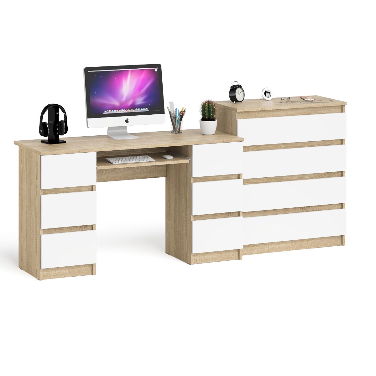 Отзывы о Столплит Комод 800 4-ре ящика Мори и двухтумбовый компьютерный стол МС-2 Дуб Сонома, Белый