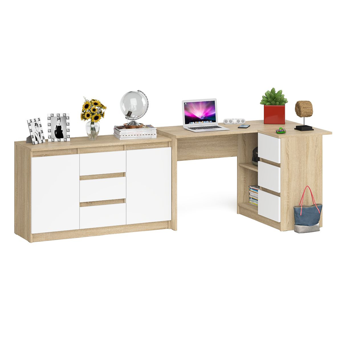 Отзывы о Столплит Комод-тумба три ящика и две дверки по бокам Мори МК1200.3 и компьютерный стол МС-16 правый Дуб Сонома, Белый