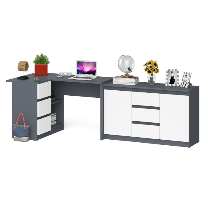 Тумба-комод ящики по середине и дверки по бокам Мори МК1200.3 и стол компьютерный МС-16 левый (Графит/Белый) Код I0000381904