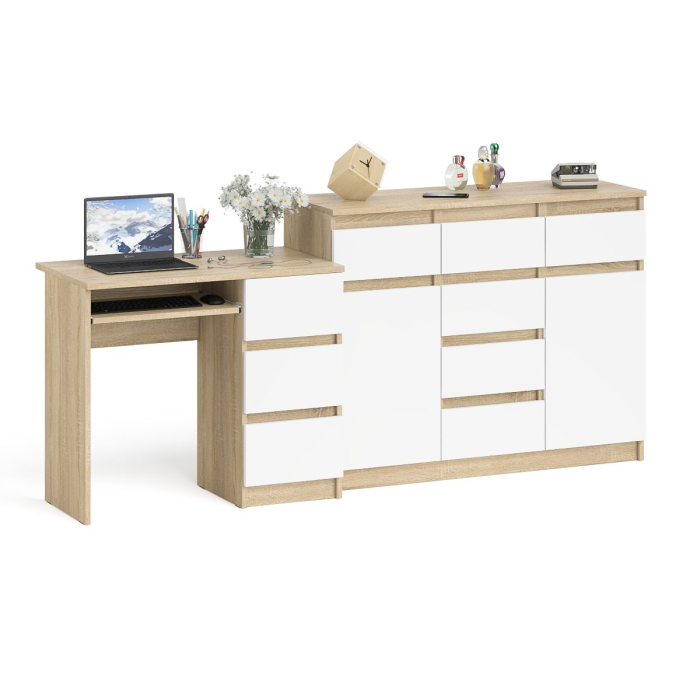 Отзывы о Столплит Комод-тумба Мори 1200 и компьютерный стол Мори МС-6 правый Дуб Сонома, Белый
