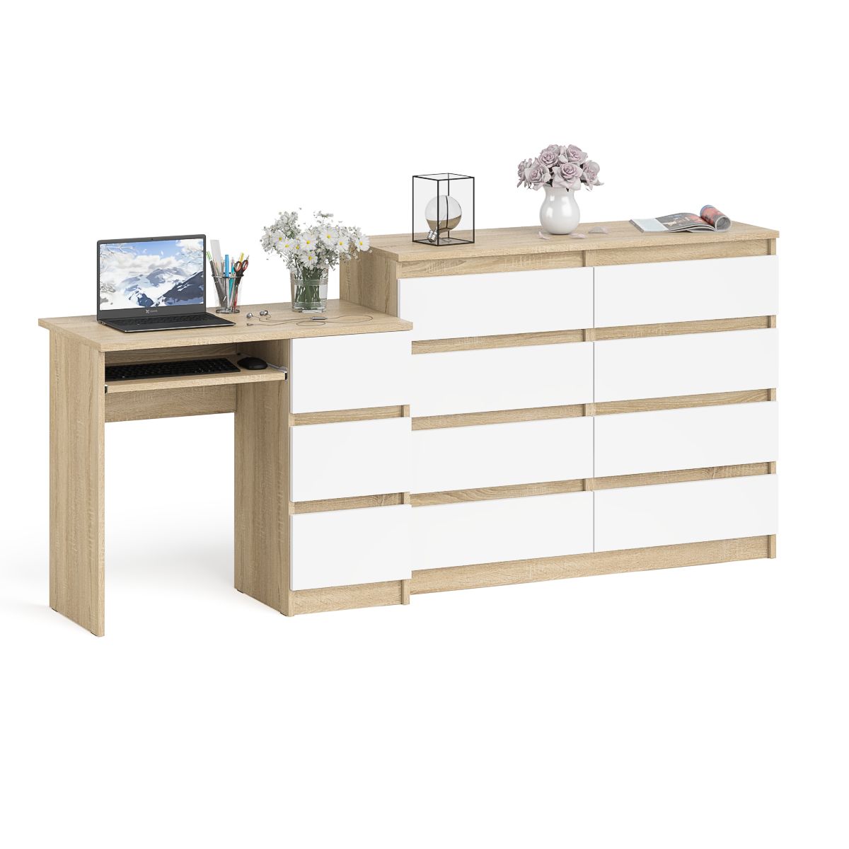 Отзывы о Столплит Комод Мори МК1200 8-мь ящиков со столом компьютерным МС-6 правым Дуб Сонома, Белый