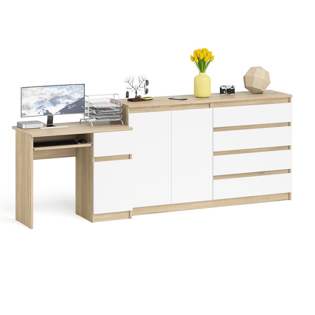 Отзывы о Столплит Комод-тумба ящики и дверки Мори 1600 и стол компьютерный МС-1 правый Дуб Сонома, Белый