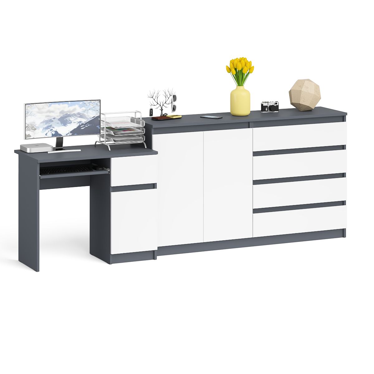Отзывы о Столплит Комод-тумба ящики и дверки Мори 1600 и стол компьютерный МС-1 правый Графит/Белый