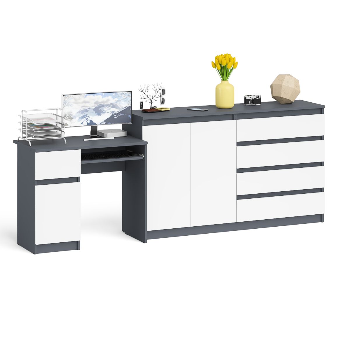 Отзывы о Столплит Тумба-комод Мори МК-1600.1 со столом компьютерным Мори МС-1 левым Графит/Белый