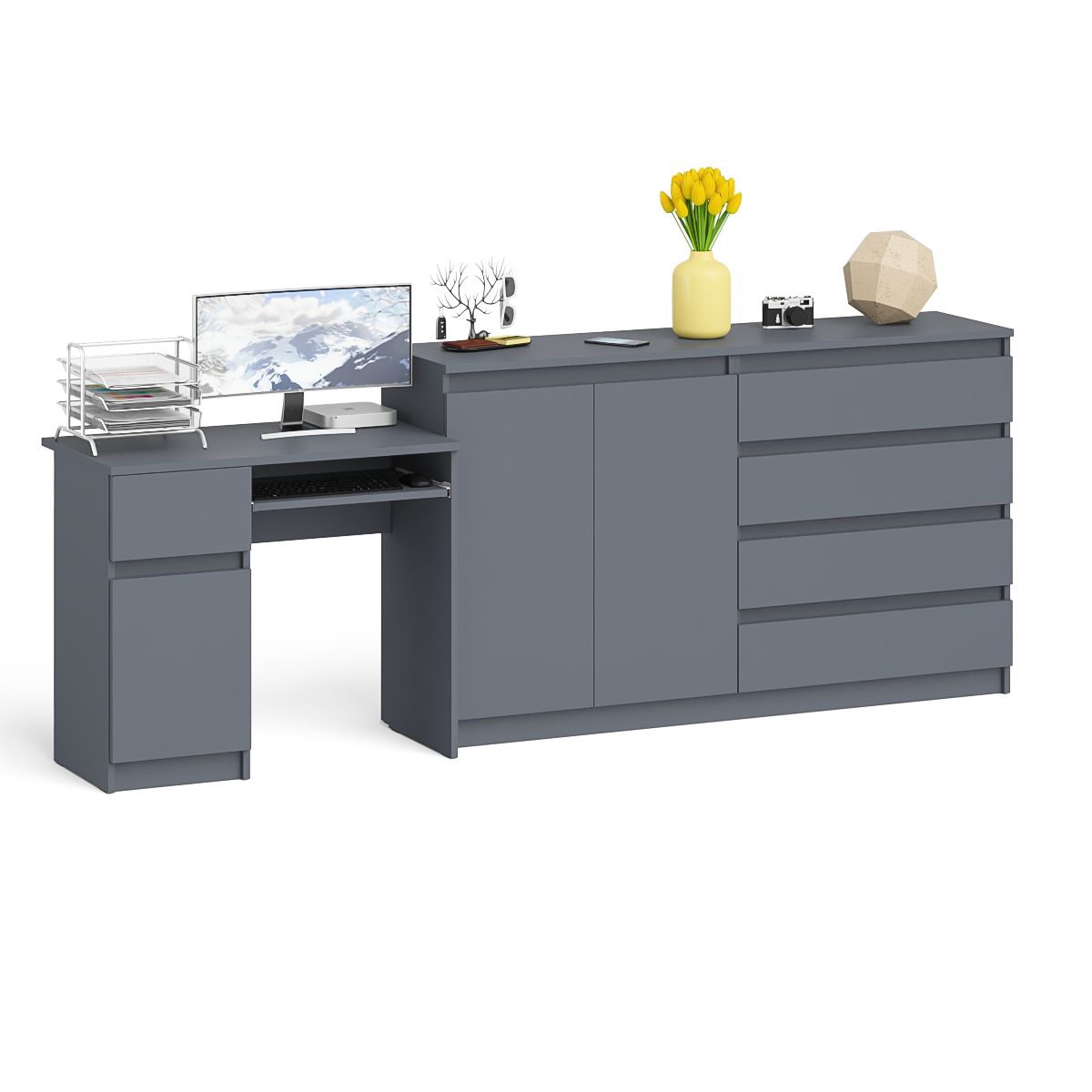 Отзывы о Столплит Тумба-комод Мори МК-1600.1 со столом компьютерным Мори МС-1 левым Графит