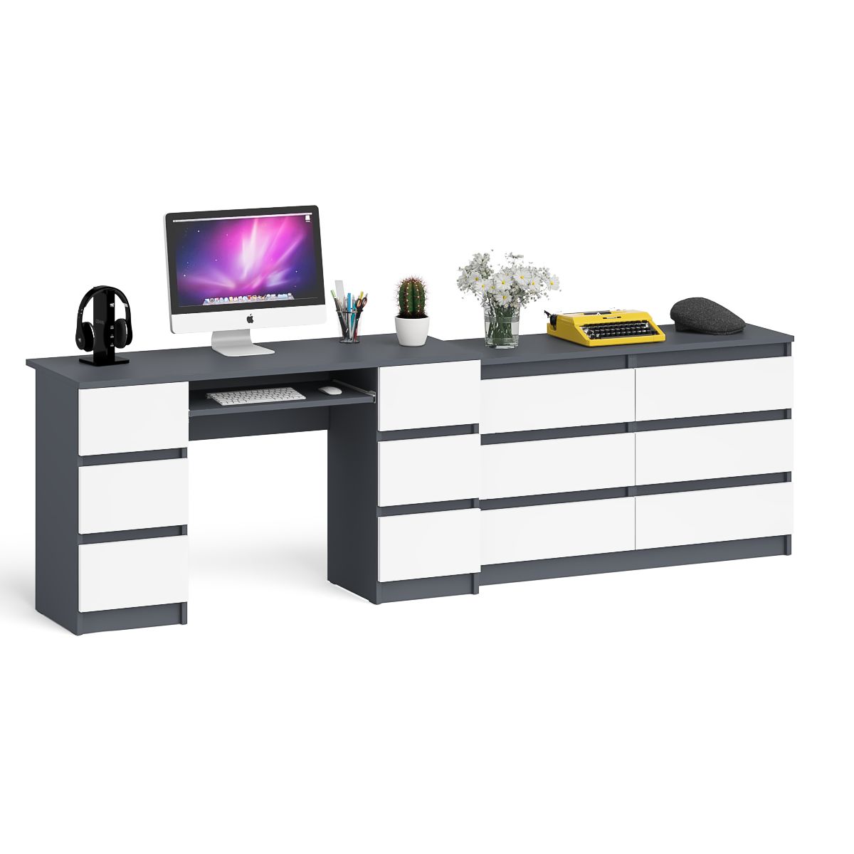 Отзывы о Столплит Комод Мори на шесть ящиков МК1200.6 и Стол компьютерный 2-х тумбовый Мори МС-2 Графит/Белый