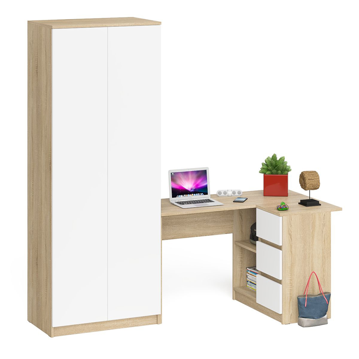 Отзывы о Столплит Шкаф Мори МШ-800 две дверки и стол компьютерный угловой МС-16 правый Дуб Сонома, Белый