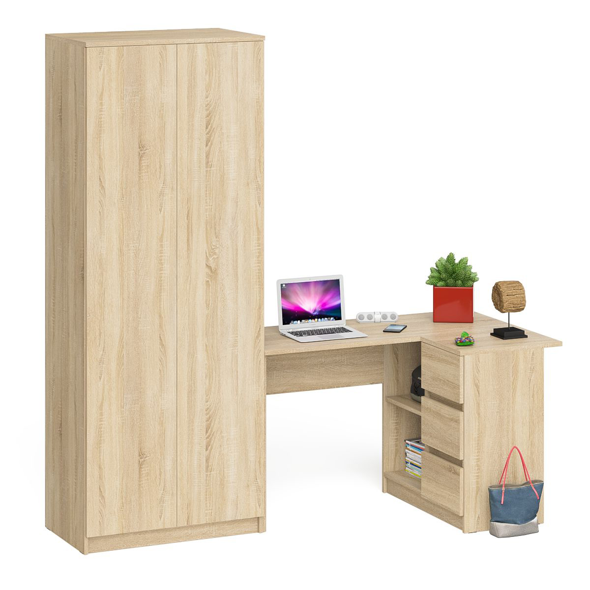 Комплектация включает стол компьютерный Мори МС-16 правый и шкаф двухдверный Мори МШ800.1. Продуманная конструкция позволяет убрать лишние предметы, тем самым сохраняя единый стиль оформления помещения. Роль ручек выполняют сами фасады. Угловой компьютерный стол Мори МС-16 правый - конструктивно тумба со столешницей образуют угол. Тумба имеет 3 выдвижных ящика и нишу с полкой по середине. Угловой компьютерный стол Мори МС-16 правый не универсален при сборке - тумба с ящиками располагается справа. Шкаф Мори МШ800.1 оборудован двумя распашными дверями. За дверями расположены горизонтальная штанга (762 мм.) для одежды на плечиках, антресольная полка для головных уборов и нижняя ниша.