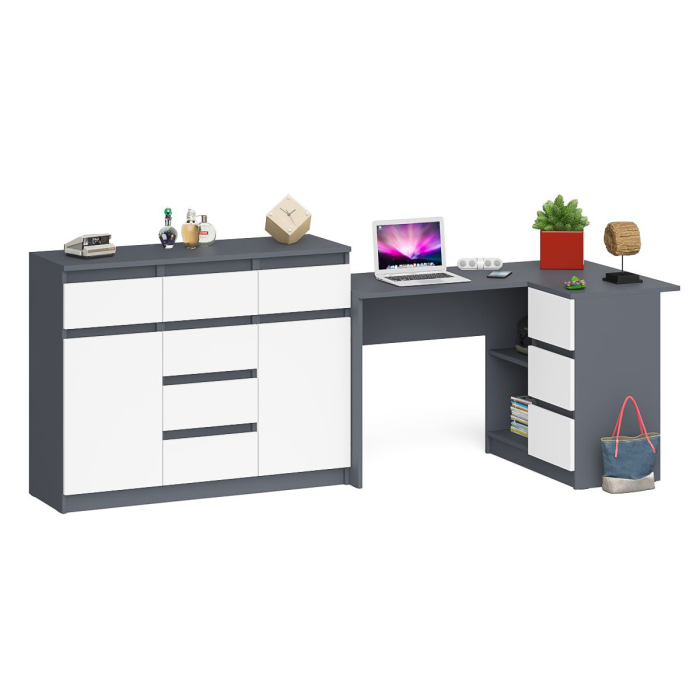 Отзывы о Столплит Комод-тумба МК1200.4 с компьютерным угловым столом МС-16 правым Мори Графит/Белый