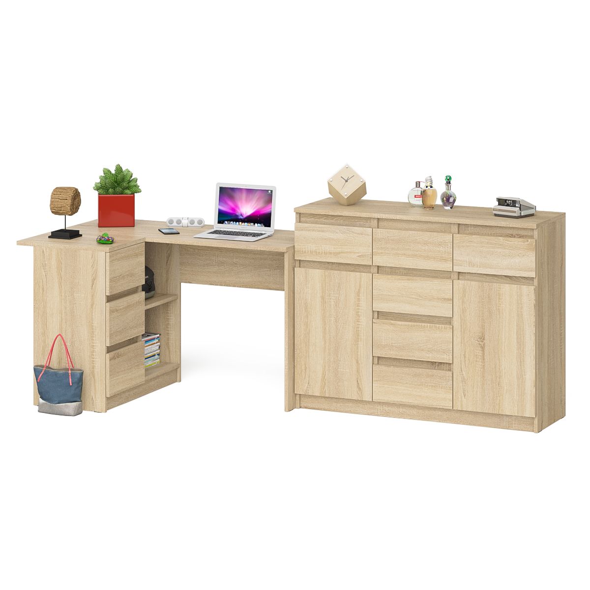 Отзывы о Столплит Тумба-комод Мори 1200 с угловым компьютерным столом МС-16 с тумбой слева Мори Дуб Сонома
