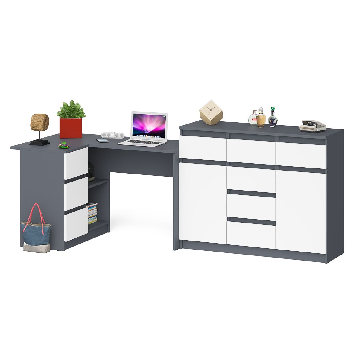 Отзывы о Столплит Тумба-комод Мори 1200 с угловым компьютерным столом МС-16 с тумбой слева Мори Графит/Белый