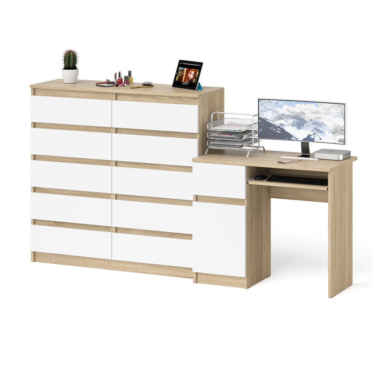 Отзывы о Столплит Комод Мори МК1200 на 10-ть ящиков и компьютерный стол МС-1 левый Дуб Сонома, Белый